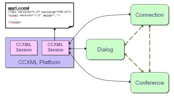 - Dialogs - A dialog includes things like VoiceXML applications, or even dialogs implemented and managed using traditional Interactive Voice Response (IVR) systems. These can be invoked and managed from a CCXML application.